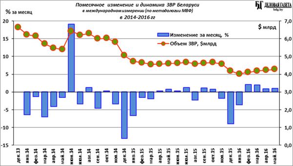 После сильного падения в декабре-январе, с февраля ЗВР Беларуси начали медленно прирастать на фоне финансовой стабилизации в стране, укрепления национальной валюты и чистой продажи иностранной валюты на всех сегментах валютного рынка. Прирост идет 4-й месяц подряд.