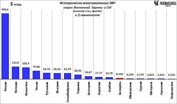 Исторически максимальные ЗВР стран СНГ и Восточной Европы